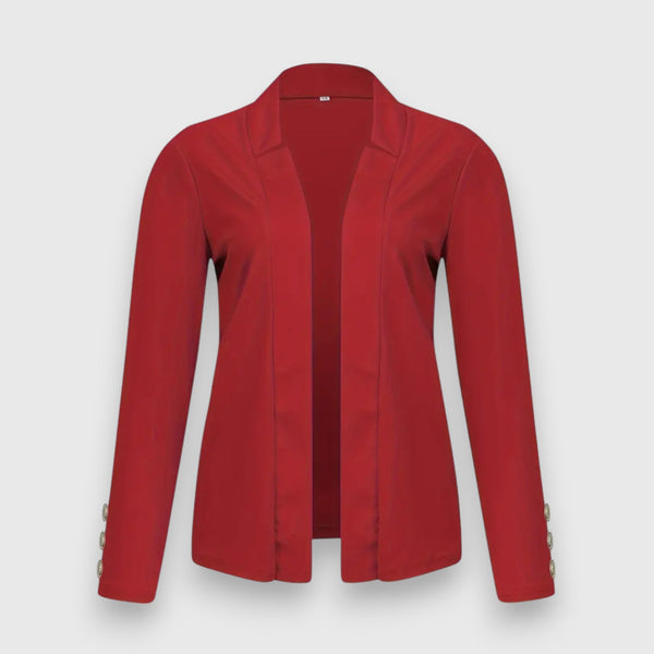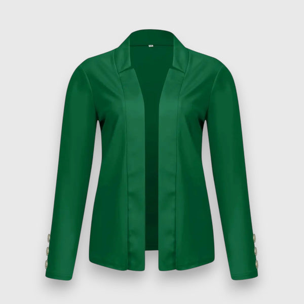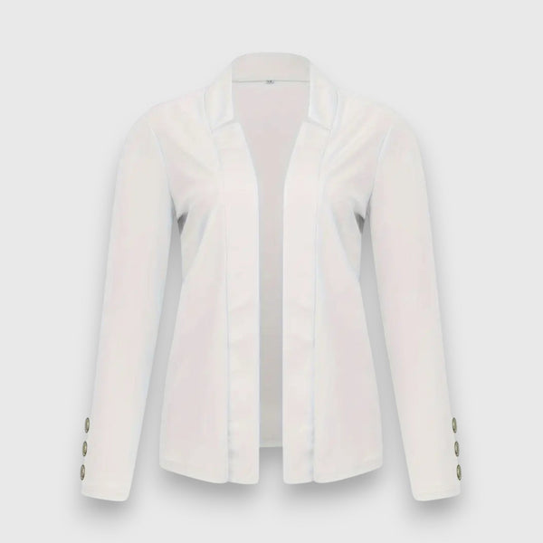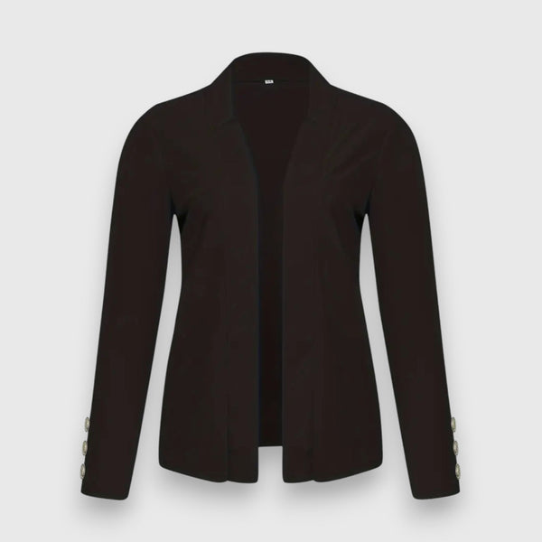 Le blazer Aria allie élégance sobre et style professionnel. Son design ouvert avec un seul bouton à l'avant lui confère une touche moderne, tandis que les manches longues et la finition de haute qualité assurent un confort optimal. Que ce soit pour un look formel ou décontracté, ce blazer est un classique intemporel pour toute garde-robe.